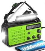 【2023 Newest】8000mAh Emergency Hand Crank Radio,AMFM NOAA Weather Alert Radio,Survival Solar Powered...