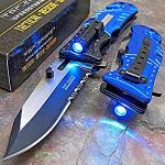 Tac-Force Blue Police Assisted Open LED Tactical Rescue Pocket Knife