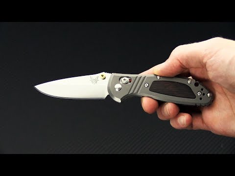 The 556-1701 Mini Griptilian is a Dealer Exclusive Limited Edition run. This Mini Grip is outfitted with a machined Titanium handle featuring wood inlays and satin CPM 20CV premium blade steel. Brand new item direct from Benchmade Knives.