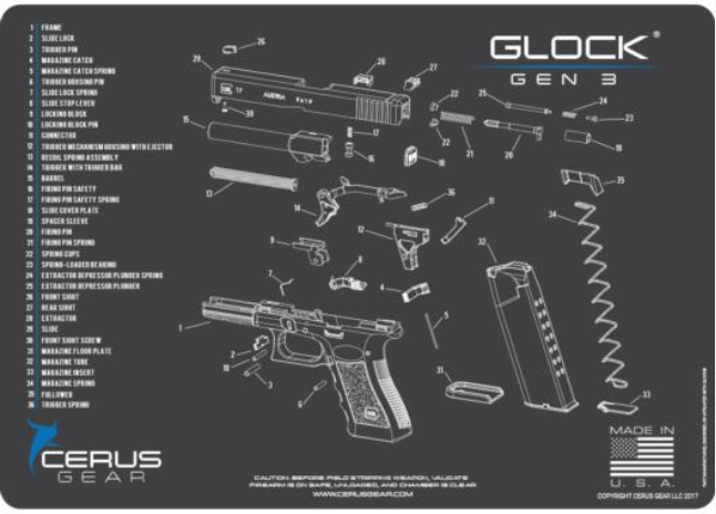 Cerus Gear 12x17 Glock Gen3 Schematic ProMat - Gray