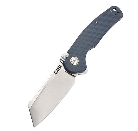CJRB Crag Tactical Knife,Cleaver Pocket Folding Knife with Stonewash D2 Steel Blade and G10 Handle for Men Outdoor, Survival, Camping and EDC (J1904R),Blue