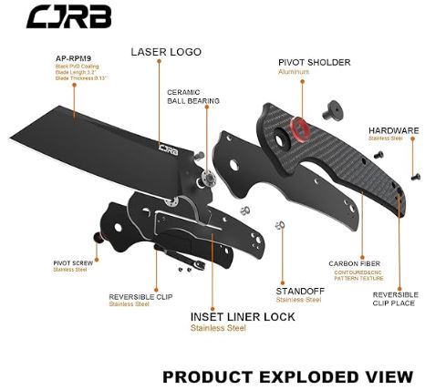 CJRB CUTLERY Folding Knife Crag (J1904) AR-RPM9 Powder Steel Black PVD Blade Carbon Fiber Handle Pocket Knife EDC Knife