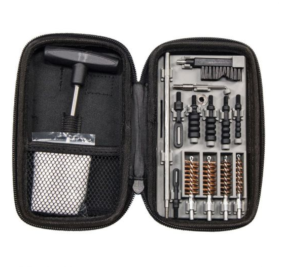 Includes: Cleaning Pick, (10) Cotton Cleaning Patches, Nylon Cleaning Brush, Bronze Bore Brushes and Nylon Jags (.22 Cal, 9mm/.357/.38 Cal, .40 Cal/10mm, .45 Cal), and (2) Nylon Slotted Tips