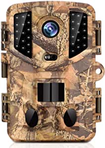 Trail Camera, 16MP Full HD Night Vision 1080P Wildlife Hunting Camera with 3 Infrared Sensors, Time Lapse and 0.2s Trigger Speed Wildlife Scouting Camera, Waterproof IP66
